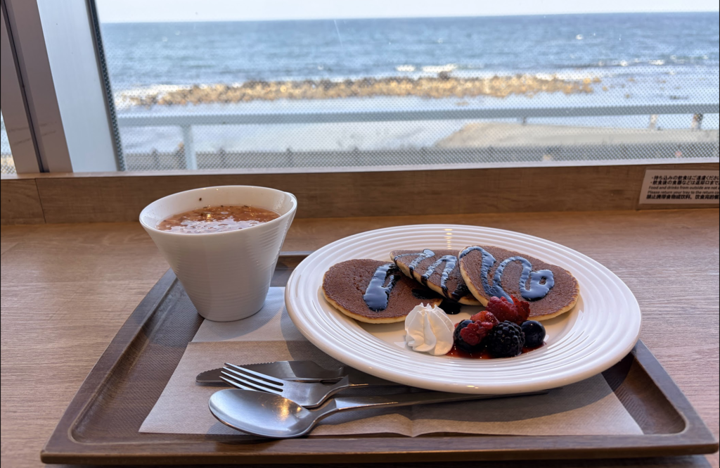 海を見ながらのパンケーキ