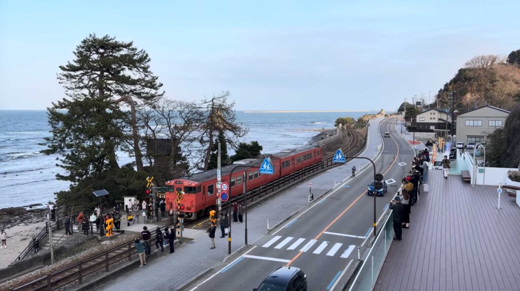 雨晴海岸は、鉄道ファンの間では有名な撮影スポットです。